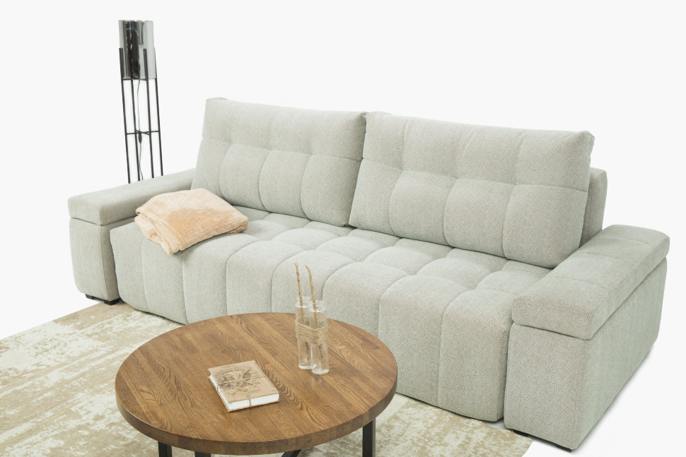 Модульная коллекция «Брайтон» — это сочетание технологий и минимализма. Особенностью коллекции является положение RELAX, которое увеличивает глубину сиденья на 30%. Подушки изготовлены из кокосовой койры — одного из самых экологичных и долговечных материалов. Благодаря своей специальной форме, они идеально подстраиваются под изгибы тела, усиливая эффект от положения RELAX.В основании дивана металлический каркас HEAVY METAL, с дополнительной гарантией 67 месяцев. Вы легко сможете разложить диван с помощью механизма «еврокнижка» со стальными направляющими AURORA STEEL. Ортопедическое наполнение AURORA FORM, сделает ваш сон здоровым и крепким.Уникальная система прошивки SOFT LINE обеспечивает пышность и мягкость форм, минимизируя растяжение ткани. В коллекции «Брайтон» большое количество мест для хранения.