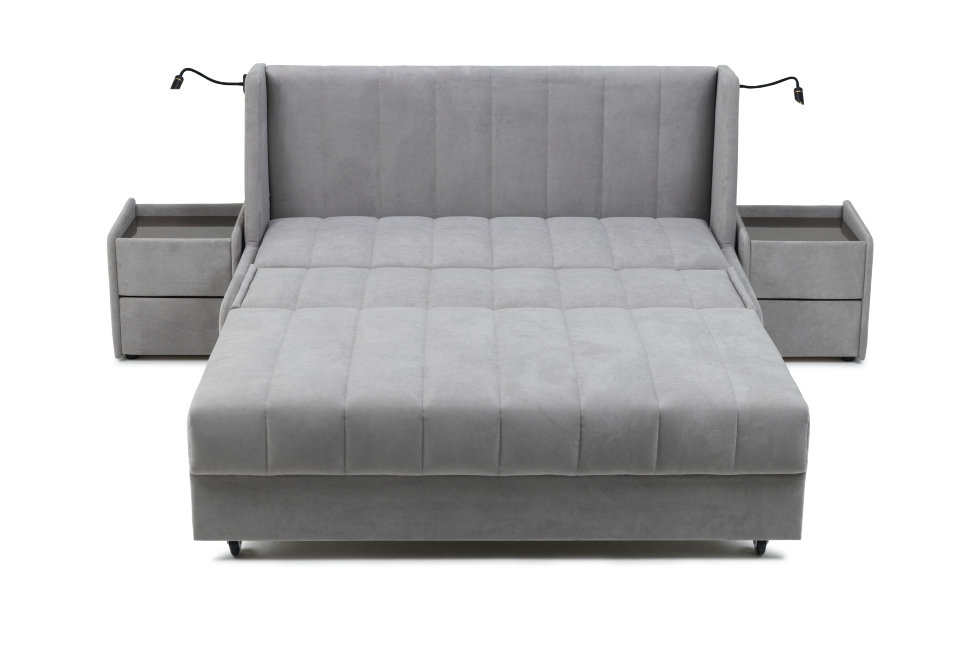 Кровать-диван «Прайд 160» — идеальное решение для вашего дома. Это удобная кровать и стильный диван. Механизм PULL UP с колёсиками при трансформации не повредит ваше напольное покрытие. Механизм максимально удобен и прост в использовании, диван сможет разложить даже ребёнок. У дивана металлический каркас HEAVY METAL с дополнительной гарантией 67 месяцев. В разложенном виде «Прайд» представляет собой полноценную кровать с ортопедическим наполнением AURORA FORM. Уникальная система стёжки SOFT LINE придаёт дивану дополнительную мягкость и минимизирует растяжение ткани.У коллекции «Прайд» два варианта исполнения изголовья: каретная стяжка и вертикальная стяжка. Дополнительная опция — встроенные в изголовье светильники. У коллекции «Прайд» есть два варианта исполнения: спальное место в основной ткани (люкс) и часть спального места в технической ткани (стандарт).Тумбы не входят в комплект, но станут отличным дополнением к кровати-дивану. Ящики тумбы легко открываются и имеют встроенные доводчики. Тумба выполнена из основной ткани и для комфортного использования укомплектована закалённым стеклом.
