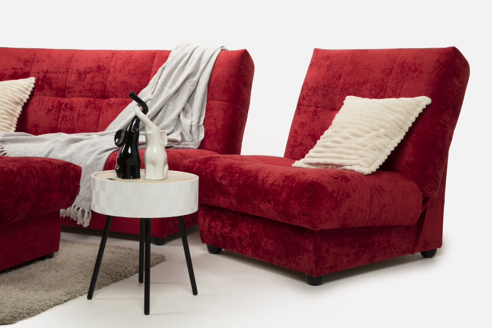 Набор «Пальмира» лишён классических подлокотников, что делает эту модель максимально простой и одновременно утончённой. Уникальная система прошивки SOFT LINE придаёт набору дополнительную мягкость и минимизирует растяжение ткани. Дополнительное положение RELAX позволяет телу максимально расслабиться, а наклон увеличивает глубину сиденья на 30%. У дивана и кресла простой и надёжный механизм «клик-кляк», который легко и быстро превращает диван в кровать. В разложенном виде диван представляет собой полноценную кровать. Можно скомбинировать полноценное спальное место из пуфа и разложенного кресла. Мягкость и упругость основания обеспечены за счёт использования амортизационной «змейки». Отдых на диване будет по-настоящему удобным, а сон – комфортным. Ниша для хранения расположена под посадочным местом.