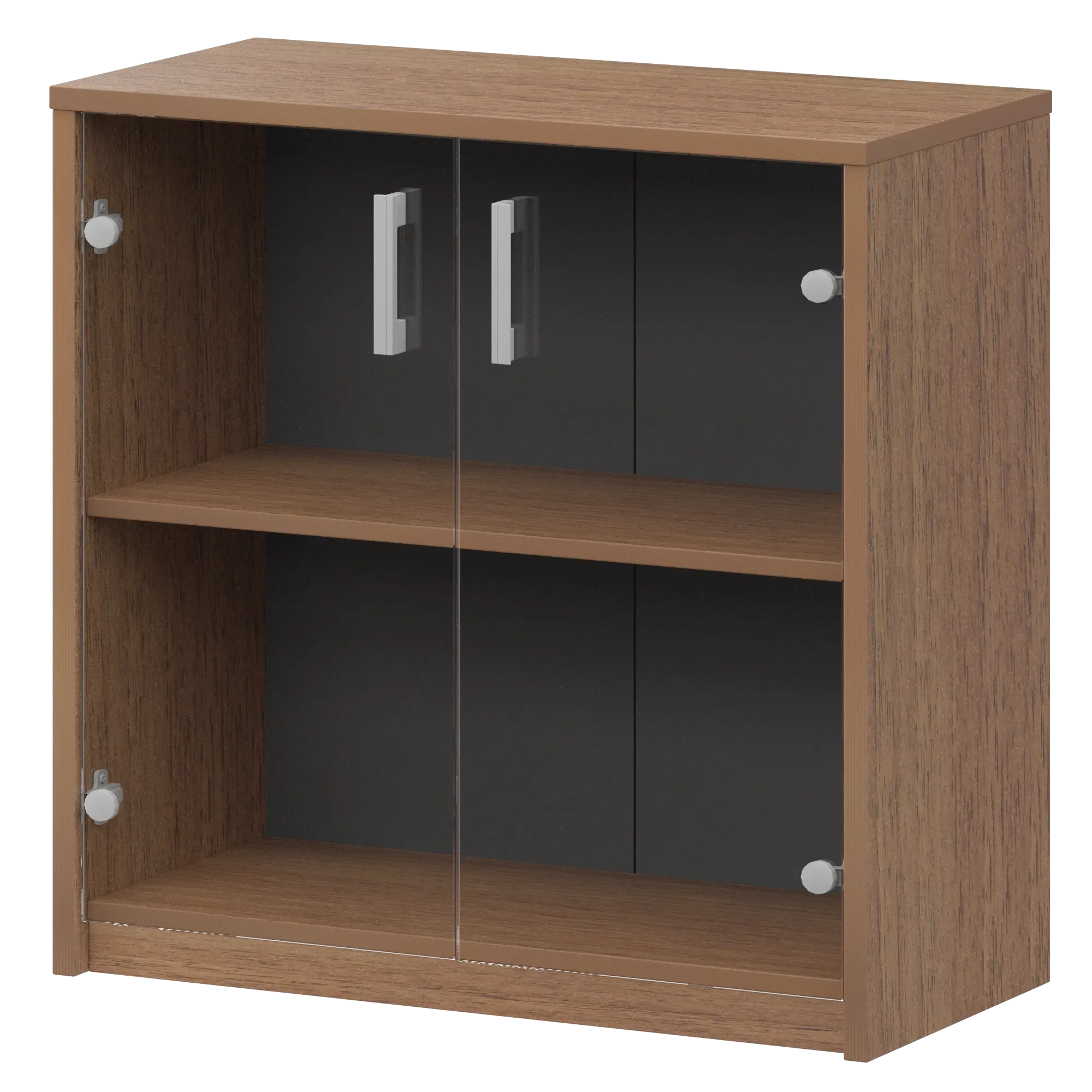 Стеллаж низкий с прозрачным стеклом Арго А-302/А-стл302пр Орех 770x365x850