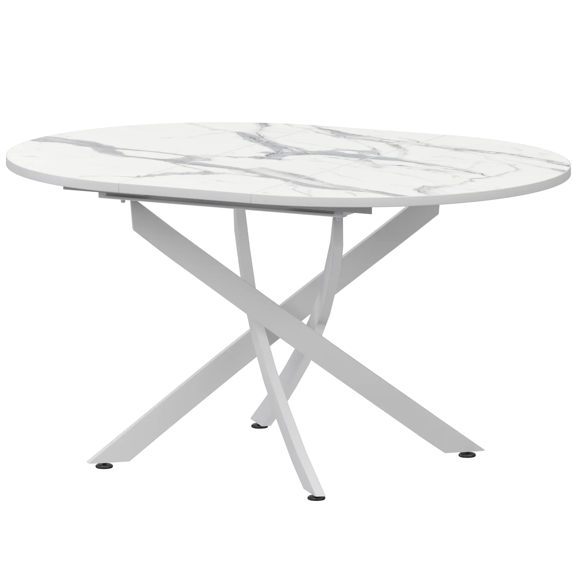 Стол раздвижной Геометрия 2 Обеденные столы в пластике Геометрия 2 1000+300 (Н-3783) Мрамор Белый/Белый муар 1000x1000x750 Ширина 1000мм +300мм вставка
