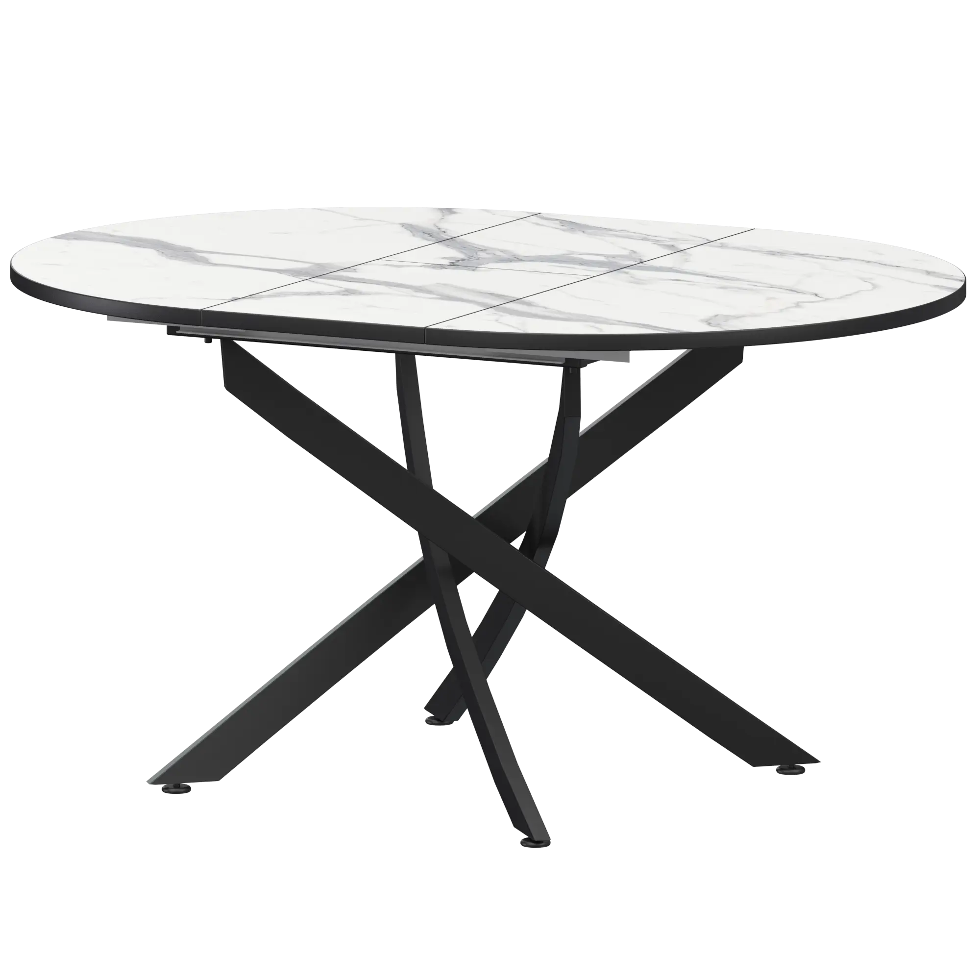 Стол раздвижной Геометрия Обеденные столы в пластике Геометрия 900+300 (Н-3784) Мрамор Белый/Черный муар 900x900x750 Ширина 900мм +300мм вставка