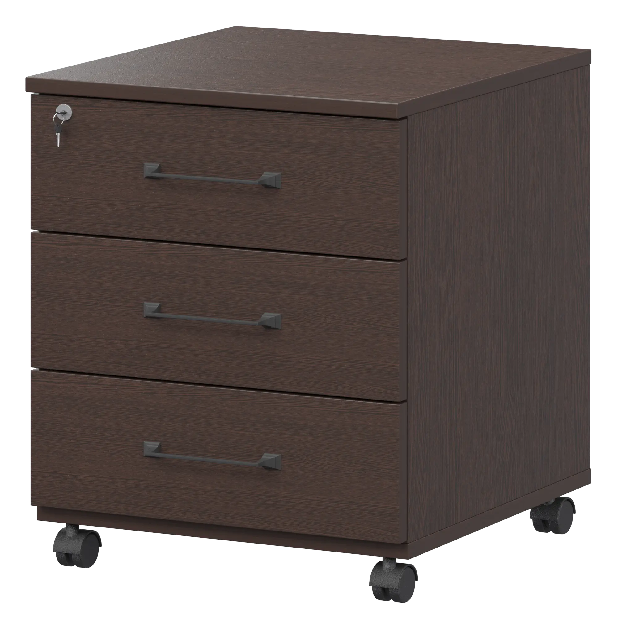 Тумба мобильная с центральным замком Приоритет К-923 Дуб венге 434x470x600 Есть центральный замок.