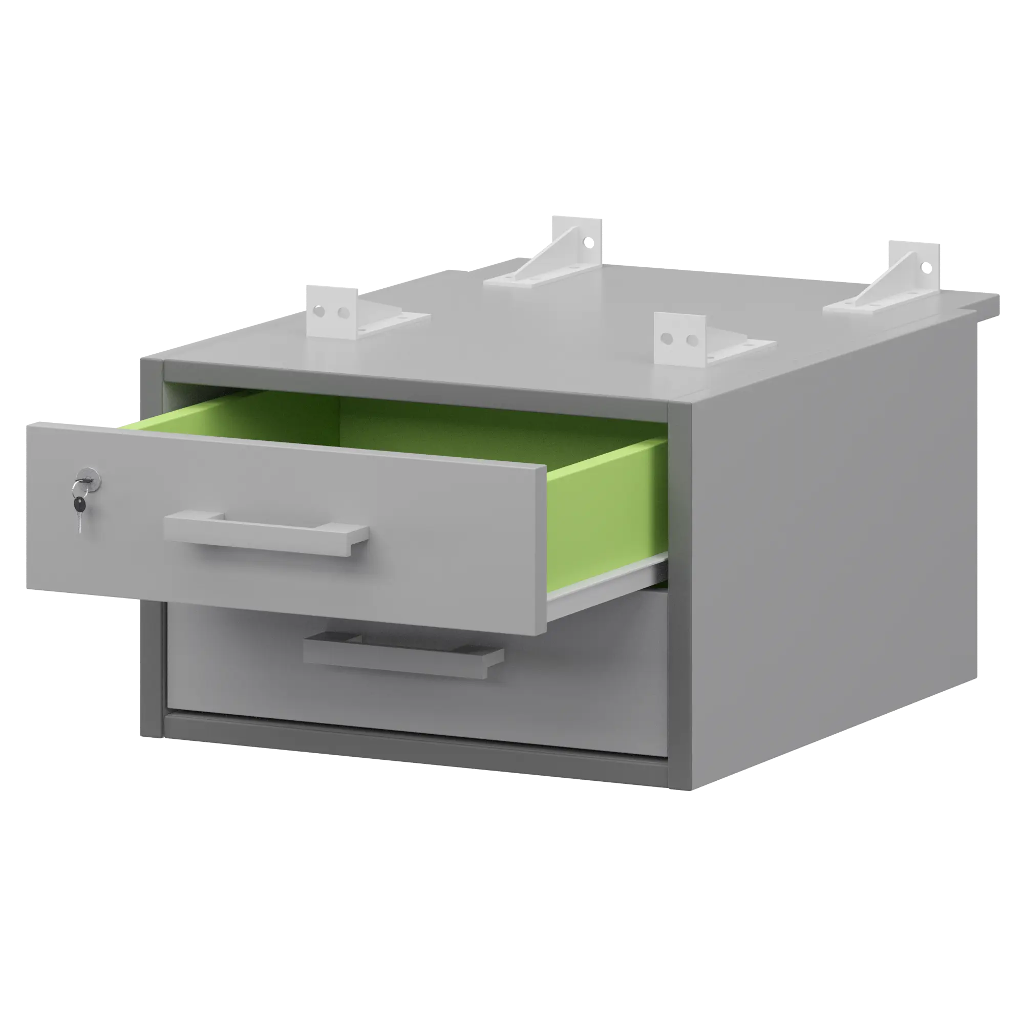 Тумба подвесная для столов на м/каркасе гл.730 мм Арго-М АМТ2-02М.73 Серый/Белый 432x546x296 Подвесная тумба с двумя ящиками с замком на верхний ящик для столов на м/каркасе АМ-002, АМ-003, АМ-004, АМ-005 глубиной 730мм