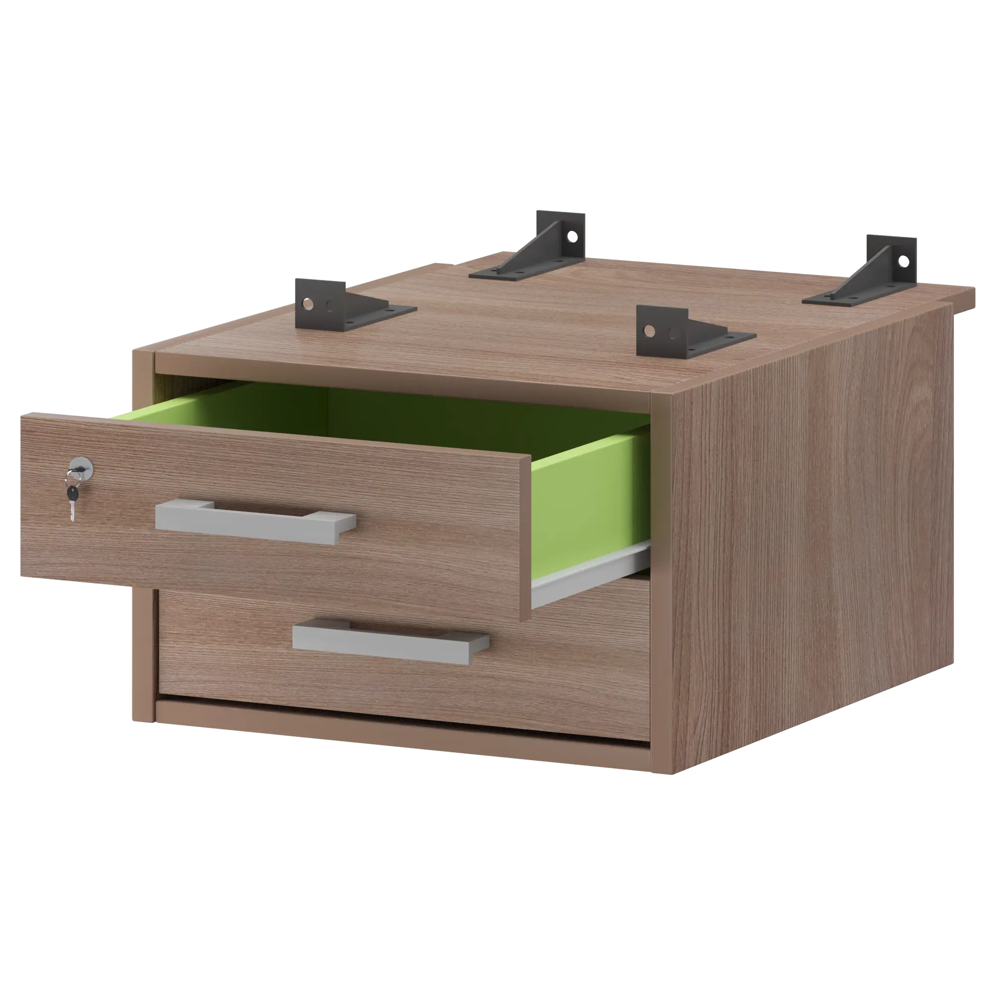 Тумба подвесная для столов на м/каркасе гл.730 мм Арго-М АМТ2-02М.73 Темный шимо 432x546x296 Подвесная тумба с двумя ящиками с замком на верхний ящик для столов на м/каркасе АМ-002, АМ-003, АМ-004, АМ-005 глубиной 730мм