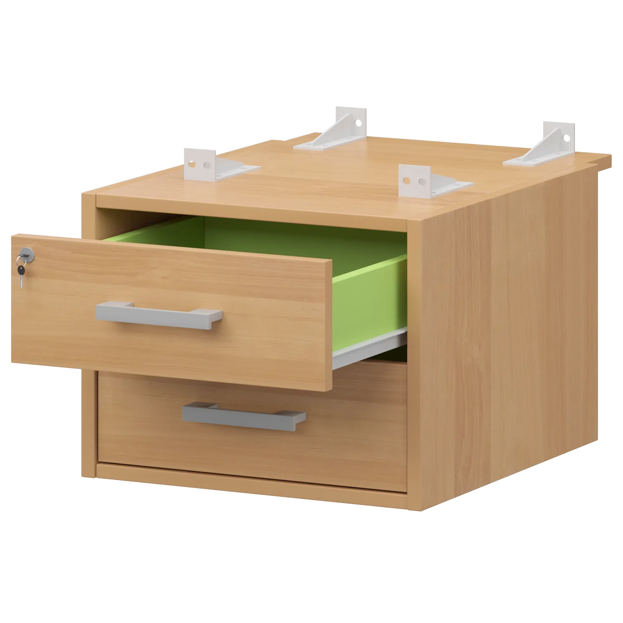 Тумба подвесная для столов на м/каркасе гл.730 мм Арго-М АМТ2-02Ц.73 Ольха/Белый 432x546x360 Подвесная тумба с двумя ящиками с центральным замком для столов на м/каркасе АМ-002, АМ-003, АМ-004, АМ-005 глубиной 730мм