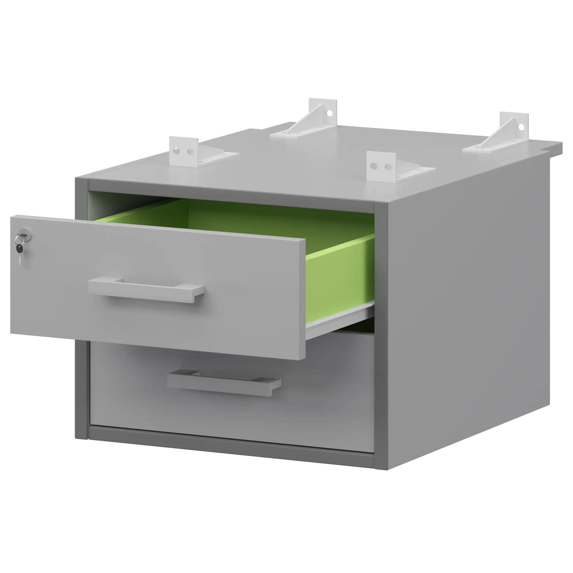 Тумба подвесная для столов на м/каркасе гл.730 мм Арго-М АМТ2-02Ц.73 Серый/Белый 432x546x360 Подвесная тумба с двумя ящиками с центральным замком для столов на м/каркасе АМ-002, АМ-003, АМ-004, АМ-005 глубиной 730мм