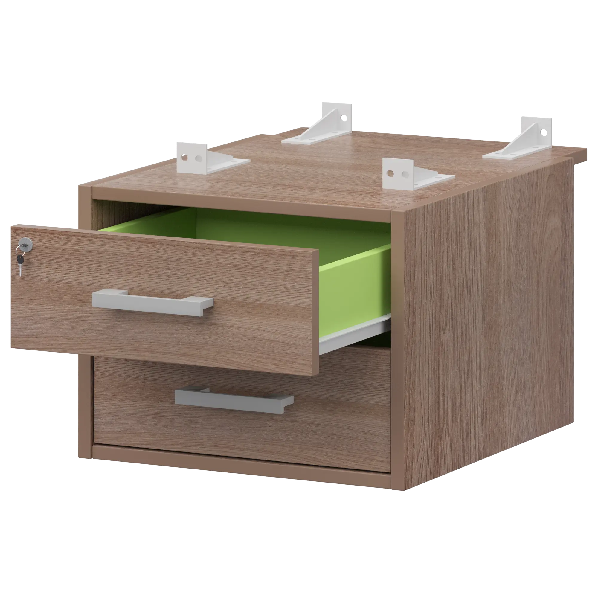 Тумба подвесная для столов на м/каркасе гл.730 мм Арго-М АМТ2-02Ц.73 Темный шимо/Белый 432x546x360 Подвесная тумба с двумя ящиками с центральным замком для столов на м/каркасе АМ-002, АМ-003, АМ-004, АМ-005 глубиной 730мм