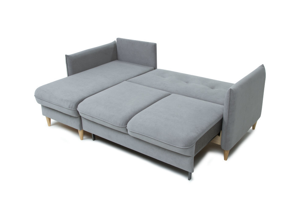 "Сканди Угол" - компактный и функциональный диван в скандинавском стиле. Высокие буковые опоры, стильный кант и элегантные линии идеально сочетаются и подчеркивают дизайн дивана. С помощью механизма трансформации «тик-так» со стальными направляющими AURORA STEEL вы сможете легко и быстро разложить диван в кровать. Ортопедическое наполнение AURORA FORM сделает ваш сон комфортным и здоровым. Под посадочным местом дивана расположено просторное место для хранения. У дивана «Сканди Угол» УНИВЕРСАЛЬНЫЙ УГОЛ, что позволяет адаптировать диван под конкретное пространство и потребности за 20 минут. Варианты декора ножек: